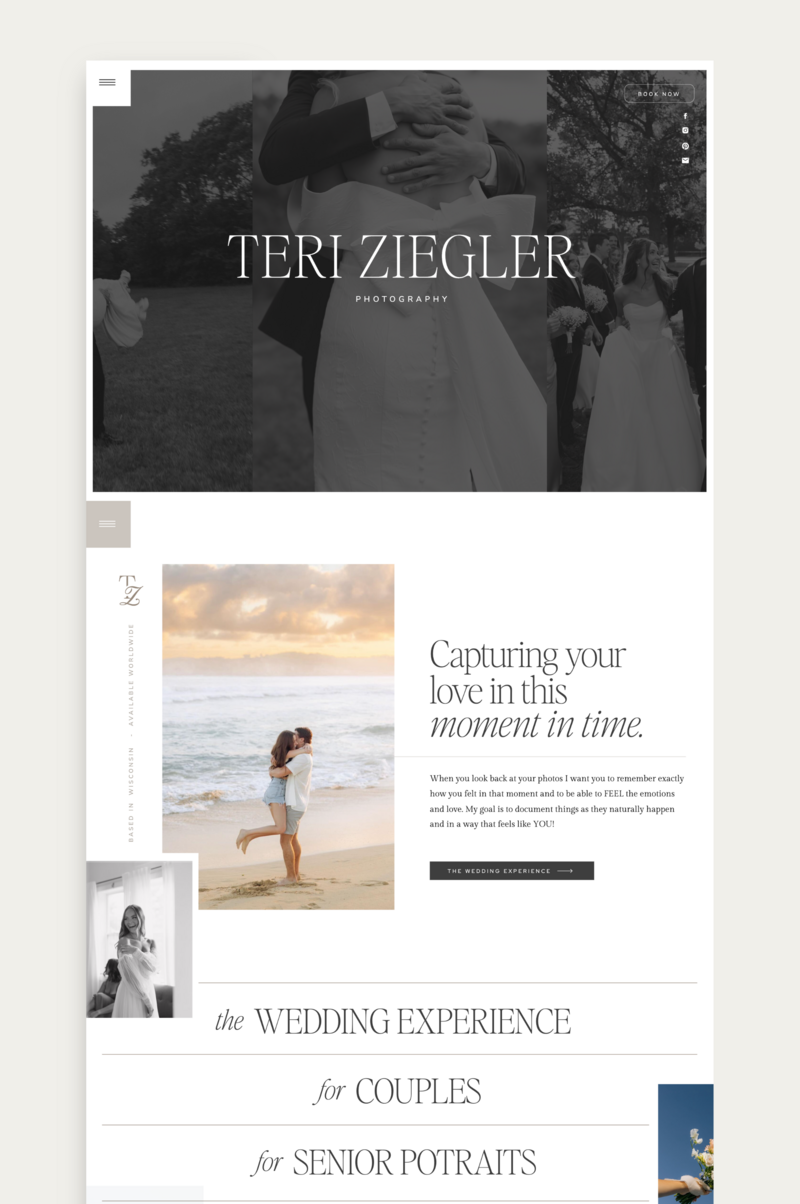 Introducing an Elegant and Modern New Space for Wedding Photography! We are absolutely thrilled to unveil the stunning new website for Teri Ziegler Photography, a talented Wisconsin-based wedding and destination photographer.